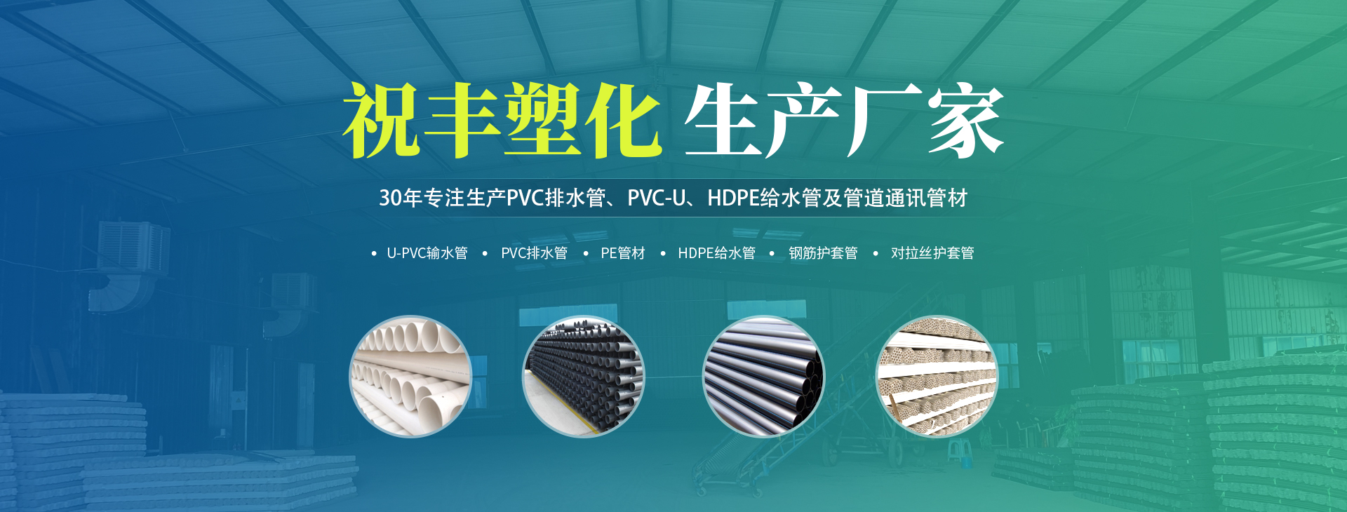 安陽市祝豐塑化有限公司坐落在滑縣工業(yè)園區(qū),東臨大廣高速,西臨京珠高速,是鄭州、鶴壁、安陽、濮陽四個城市的輸紐,交通便利、環(huán)境優(yōu)美。 公司始建于八十年代,經(jīng)過二十余年的艱辛創(chuàng)業(yè),規(guī)模不斷壯大,由十多萬元資產(chǎn)的小廠,發(fā)展到現(xiàn)占地面積達一萬多平,建筑面積一萬平,資產(chǎn)2000多萬元管材生產(chǎn)企業(yè)。公司生產(chǎn)PVC-U、PVC排水管、HDPE給水管、鋼筋護套管管道通訊管材等產(chǎn)品,廣泛用于農(nóng)田節(jié)水、高山引水、人畜用水、建筑、電力通訊等多種用途,品種齊全。為了滿足用戶需求,可承攬各種給水、節(jié)水、灌溉工程。“祝豐塑化”憑借強勁的實力,優(yōu)良的管理水平?!耙再|(zhì)量求生存,以信譽求發(fā)展”的原則全力以赴和大家共同塑造美好未來。..